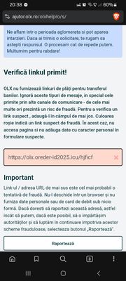 Am primit un mesaj spam (de pe olx) și doresc să îl raportez în mai multe locuri pentru a ajuta la informarea cetățenilor.