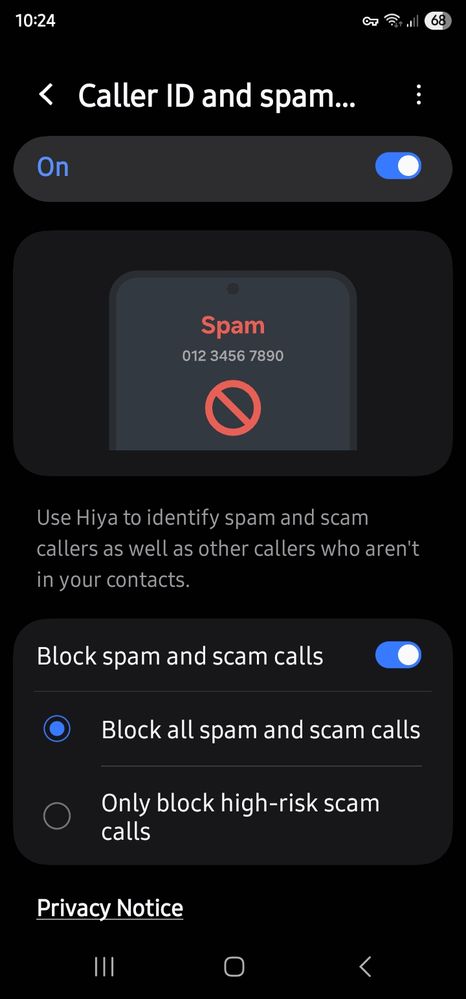 eu personal am activat din meniul telefonului (S23U) anti spam si scam call si nu mai am probleme , toate apelurile sunt blocate foarte eficient