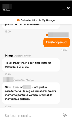 Mie unul nu mi s-a intamplat niciodata. Dar doar de confirmare, vorbim de chat-ul djingo de aici, da? Nu din aplicatia My Orange.