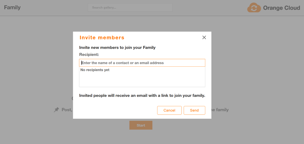 În Orange Cloud ai opțiunea de Sharing unde poți avea albume și foldere shared cu persoanele pe care le adaugi: