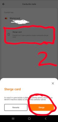 @Gav2: Dacă este mai simplu din aplicația MyOrange, atunci accesează aplicația și din Altele > Setări > Cardurile mele vei avea acces la cardul salvat inițial și opțiunea de ștergere. Vezi cele 2 foto de mai jos în acest sens.