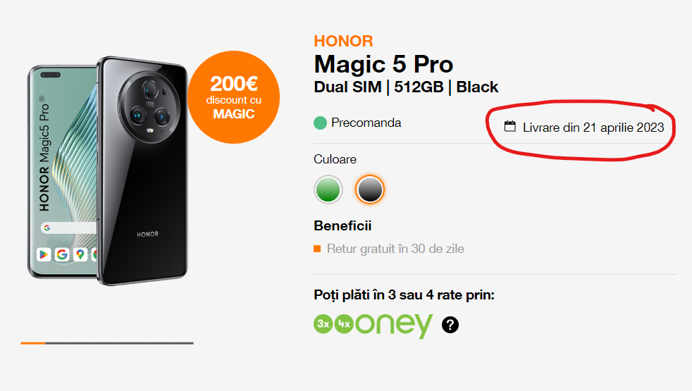 [Rezolvat] Comanda nu a fost plasata! Honor Magic 5 pro