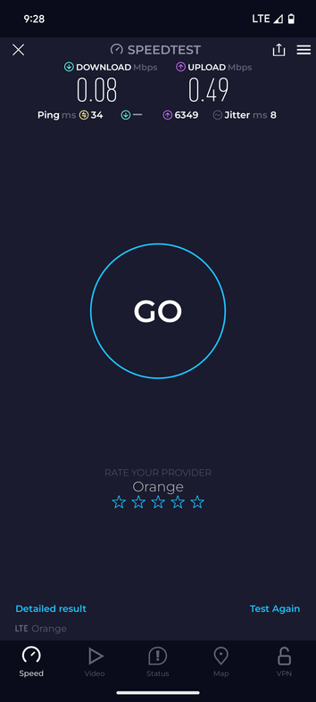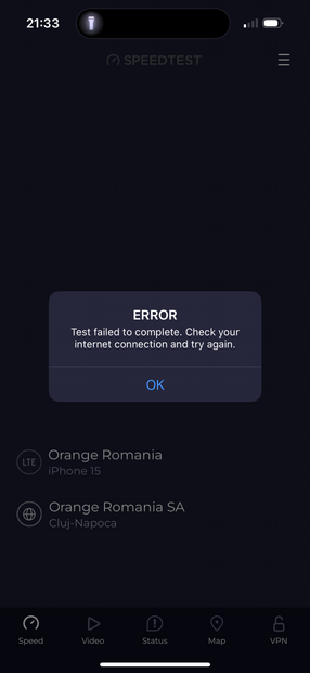 E mai bine pe 3G decat pe 4G. Pe de alta parte, facand testul acum, observ ca si pe 4G e mai bine. Din pacate, nu pot sa-l tin pe 3G pentru ca indoors nu am semnal aproape deloc. E mai rau decat pe 4G. Nici nu porneste testul de viteza.