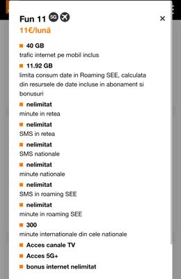 Verificat pe situl Orange, unde scrie clar - abonament Fun 11, resurse; „40 GB din care 22,5 GB în roaming UE ȘI GB”. Se poate vizualiza de oricine, chiar la momentul prezent.