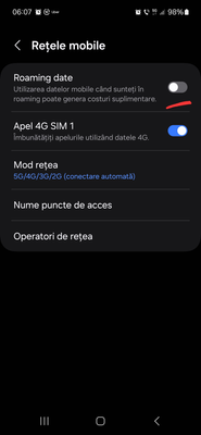 O găsești în setări - conexiuni - rețele mobile - roaming date..
