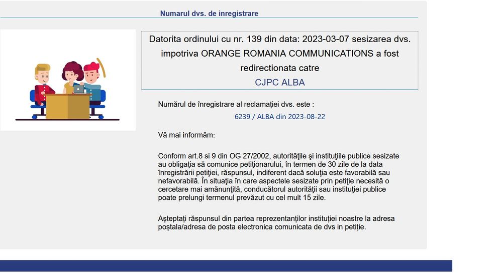 Pentru situațiile de tip reclamație, îți punem la dispoziție adresa de e-mail reclamatii@orange.ro.