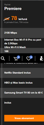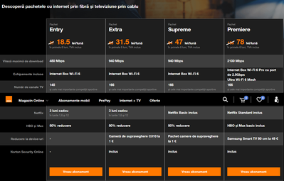 Eu nu am net si tv de la Orange, asa ca poate gresesc, insa daca despre asta este vorba, din ce vad pe site exista oferta Premiere la 78 lei in primele 6 luni, redus de la 156, insa in componenta ofertei spune ceva si de o reducere la un tv Samsung Smart 80.. eu inteleg ca sunt incluse mai multe beneficii in acel abonament, insa nu si tv-ul, pentru care doar se acorda o reducere.. ar putea fi de aici diferenta? Ai luat cumva si un televizor?