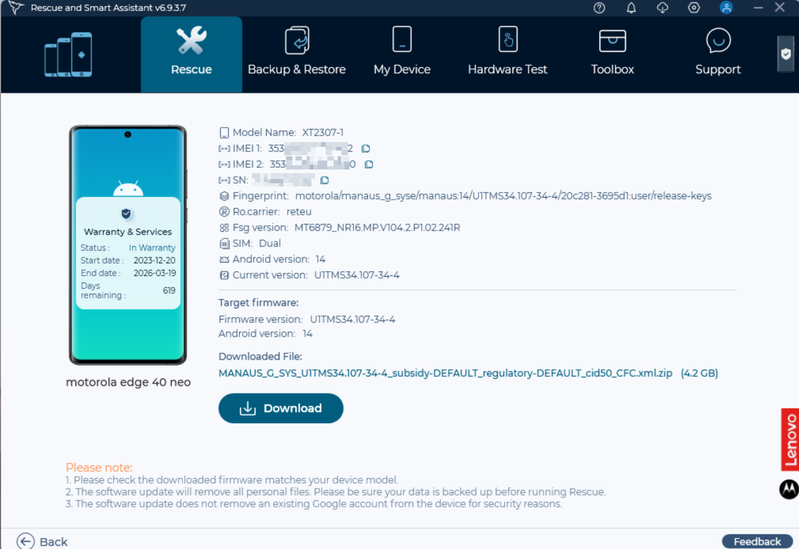 De asemenea, cu toate ca telefonul in cauza este un Motorola Edge 40 Neo 5G (model: XT2307-1), acelasi soft si o procedura similara se poate aplica si la alte modele de Motorola.