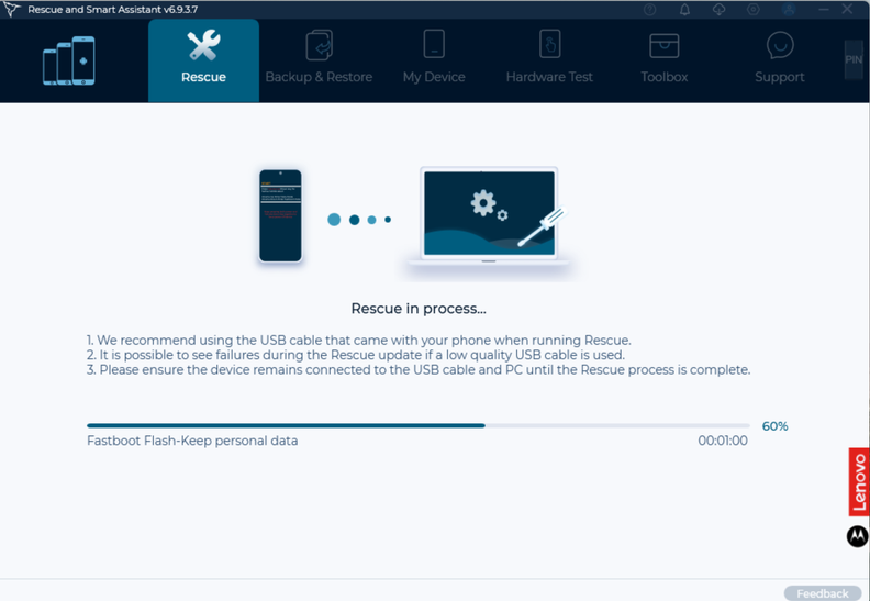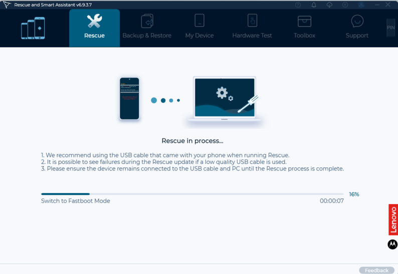 Dupa ce a terminat, ar trebui sa va apara ceva de genul asta. O pagina similara cu cea de sus, doar ca acum in loc de Download, avem Rescue.
