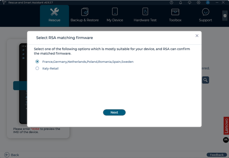 Aici avem mai multe variante. Fie manual, selectand Phones, introducand IMEI-ul, sau conectand telefonul in fastboot mode (nu e acoperit de acest tutorial), fie folosind functia de detectie automata cu USB debugging.