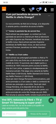 Salut! Îmi e greu sa cred că Netflix este gratuit pe toată perioada contractuală. Eu am căutat peste tot și nu am găsit oferta cu Netflix gratuit 12 sau 24 de luni, ci doar 3 (trei) luni, lunile 1, 6 și 12 din contract.